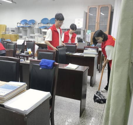 活动当天,同学们早早集合,分工合作,对萤窗小阁进行全面清扫。从书架的整理到地面的清扫,从桌子的擦拭到角落的清理,每一项工作都细致入微。