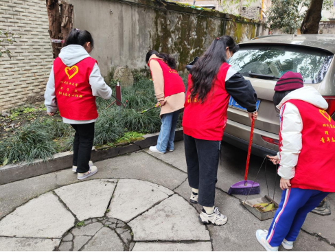 初到的志愿者们对工作并不熟悉,由居委会的工作人员分批次带领深入各个小区开展志愿服务工作。首先是检查卫生、清理街道,工作人员指导志愿者们注意到每一个角落:花坛里的塑料、墙角的落叶、门上的小广告,这些细节共同构成了社区的风景外貌。志愿者们刷墙、扫地、夹垃圾,不一会儿就将社区打扫得干干净净,区委会的居民们都对大家的辛勤劳动称赞不已。