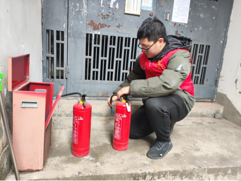 随后,志愿者队伍又和工作人员一起检查社区消防设施、排查消防隐患。志愿者们打开灭火器、消防栓仔细检查,包括指针是否指向绿色、输水管是否接好等,当看到有的地方消防设施缺失,志愿者们立即反映,丝毫不敢懈怠。志愿者们还对楼栋电动车违规拉线、充电进行了排查,大家都为千里之外的大火而警醒,绝不会让这样的灾难重现。